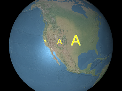 下方的标签位于地球中心 但眼球的偏移使它永远 无论观众或地球的定位如何 都出现在地球顶部.